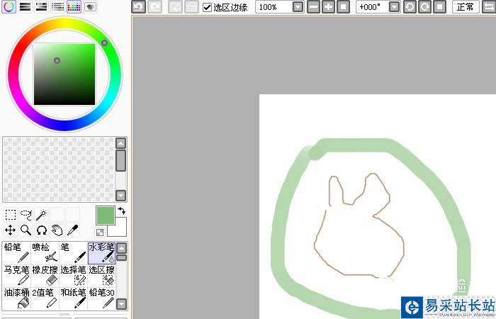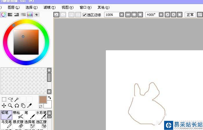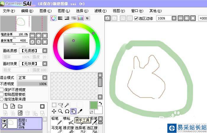 3、鼠標左鍵單擊【確定】按鈕后,在SAI軟件的繪圖區,可看到白色的畫布,用鉛筆工具,選擇一個顏色,然后在畫布上隨意畫個草圖,如下圖所示。