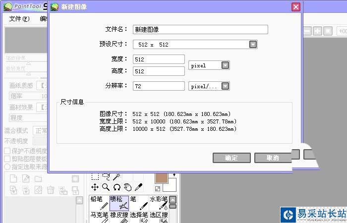 2、在新建的文件窗口上,可設置文件的大小,并重新命名,如下圖所示。