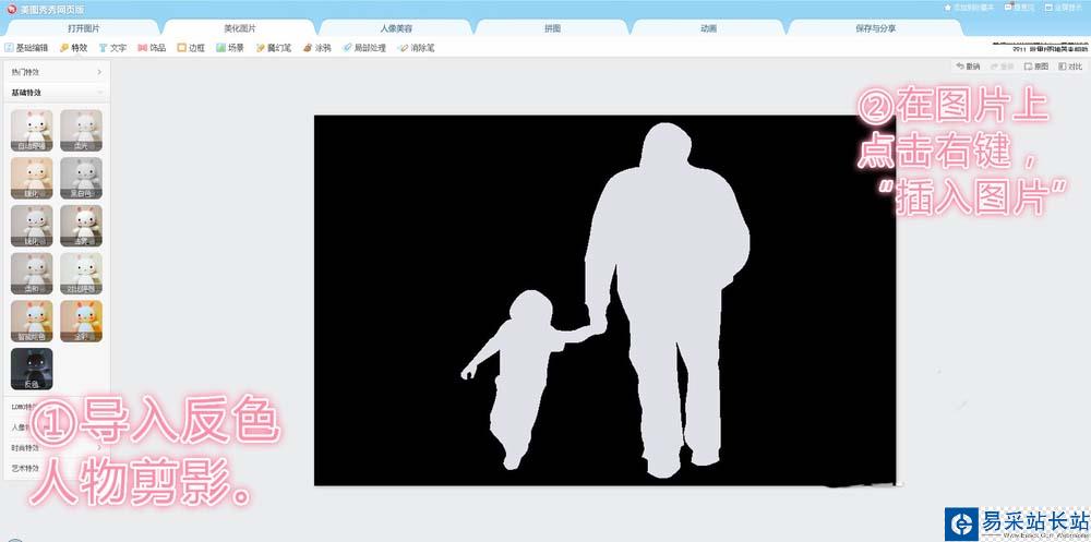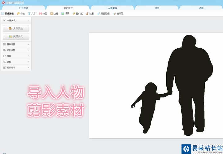 1、把人物剪影素材導(dǎo)入到美圖秀秀網(wǎng)頁版。