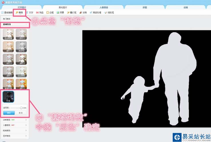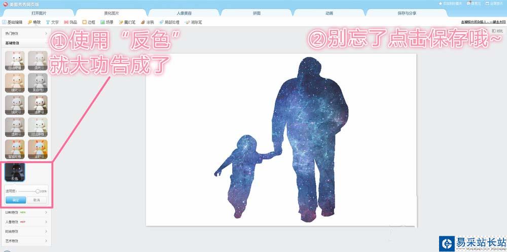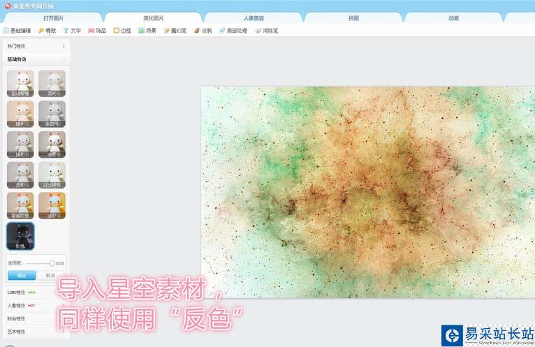 3、然后再把導(dǎo)入,使用反色特效,保存。