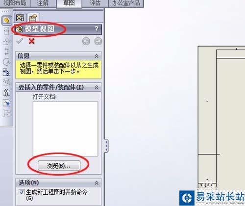 2、在左邊的“模型視圖”屬性管理框中單擊“瀏覽”按鈕,選擇以畫好的三維模型,這里以螺栓為例