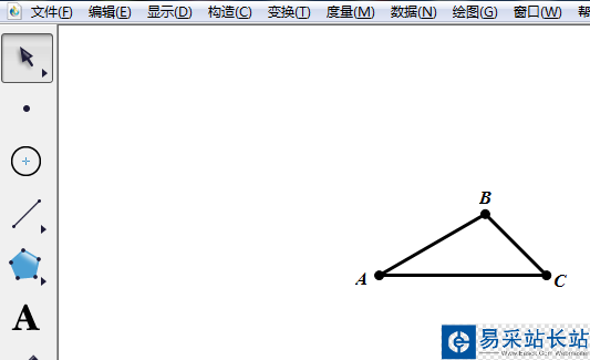 8、使用線段工具,做出△ABC的另兩邊,使用標簽工具,給三角形頂點打上標簽。這樣三角形就畫好了,你學會了嗎?