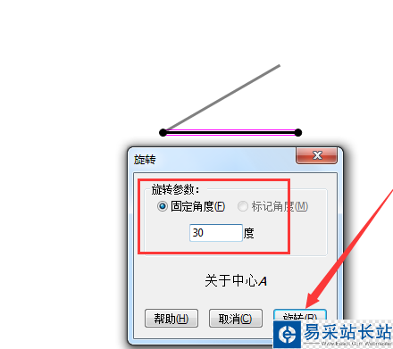 5、選擇固定度數,比如輸入30°,單擊旋轉按鈕。