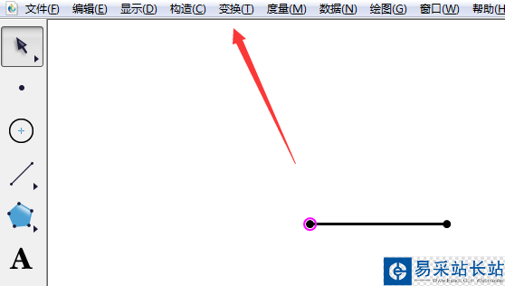 4、接下來,要畫∠A=30°,如何操作呢?前面使用了平移變換,現在就該輪到旋轉變換了,選中點A,單擊變換,選擇標記中心。