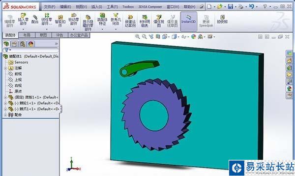 棘輪機構是搖桿的連續往復擺動轉換成棘輪的單向間歇運動的機構。這里分享一種省略了搖桿的solidworks棘輪棘爪運動仿真的方法,仿真時用馬達帶動棘輪單向連續轉動代替了搖桿帶動棘輪單向間歇運動。