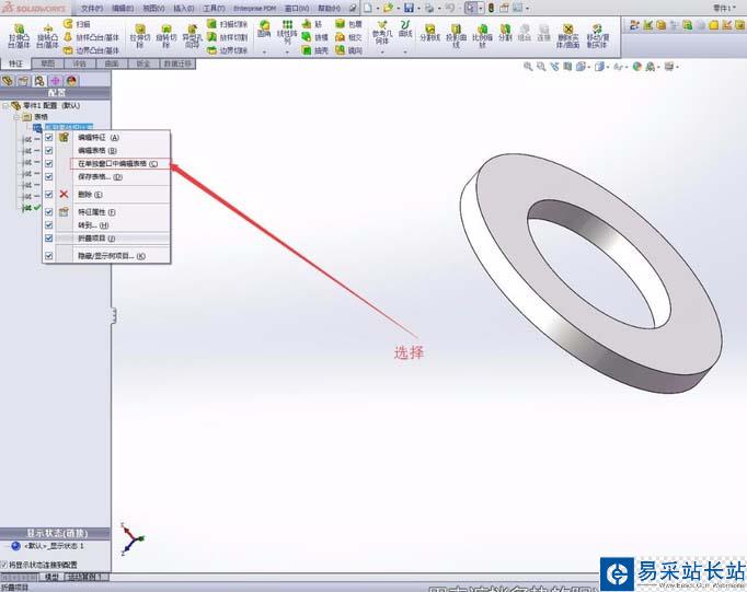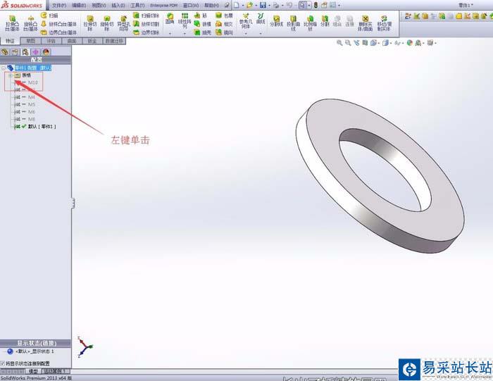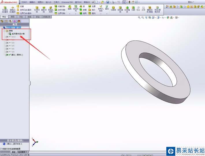 1、打開我們上次創(chuàng)建的小墊圈,在設計樹的管理器中選擇配置,就能看到零件的配置