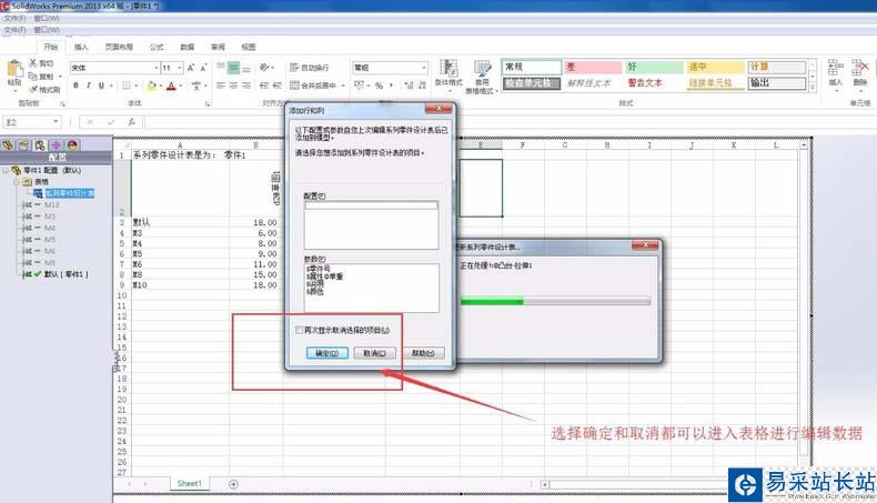 3、想要進入設計表中修改數(shù)據(jù),右鍵單擊系“列化零件設計表”,選擇“編輯設計表”,出現(xiàn)下圖的界面,選中“確定”或“取消”都能進入表格進行編輯。