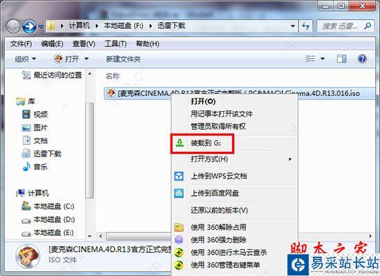 2、安裝需要使用虛擬光驅(qū),沒有的朋友可以點(diǎn)擊在本站下載,如DVDFab Virtual Drive,將Cinema4DR13鏡像文件右鍵載入,不要使用解壓文件,會安裝錯誤。