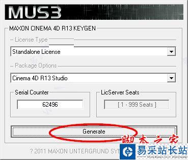 6、打開C4D R13注冊機(jī),點(diǎn)擊Generate