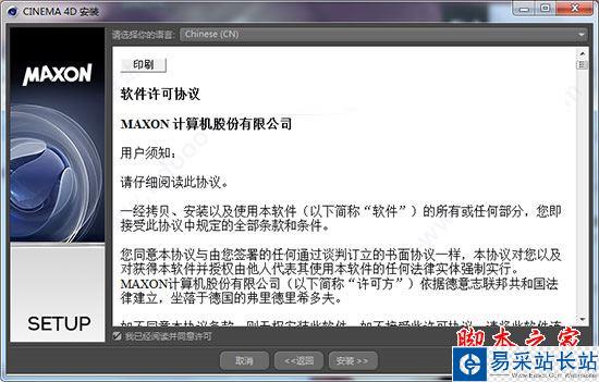 8、勾選第一項(xiàng)“Cinema4D”,點(diǎn)繼續(xù)