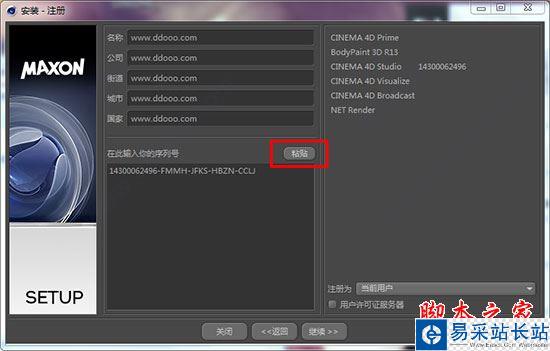 7、回到安裝程序,填寫基本信息,點(diǎn)擊“粘貼”