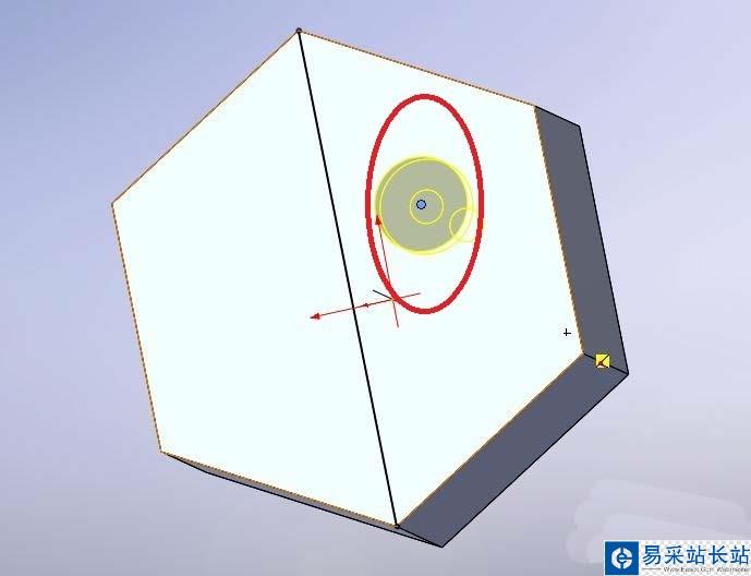 7、在需要生成孔的面上隨便點一下,可以看到孔形狀的預覽