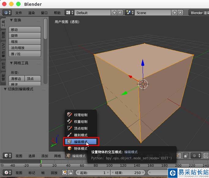 1、打開blender模型,進(jìn)入“編輯模式”。