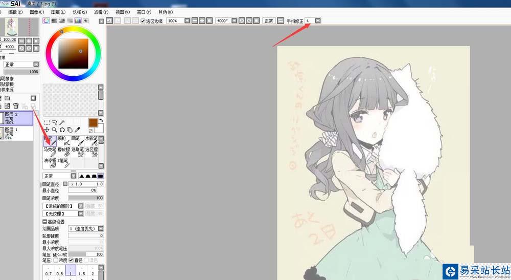 5、選擇鉛筆或其它你認為漂亮的工具,可以調下防抖動,讓你的線更漂亮。