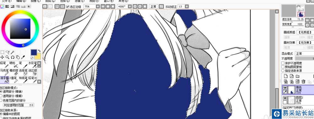 4、魔棒工具會選擇閉合曲線多余的部分用選區擦擦掉。