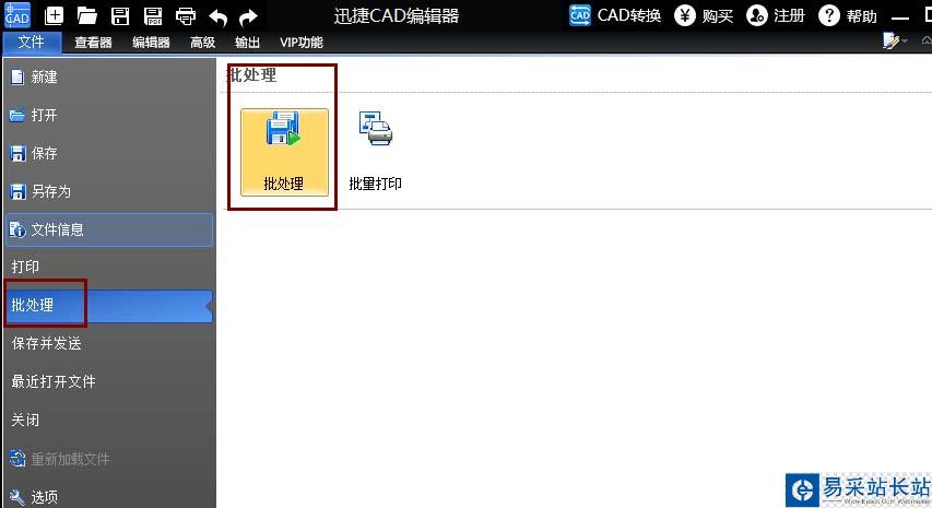 3、軟件打開之后,點擊軟件界面中的“文件”下的“批處理”工具。