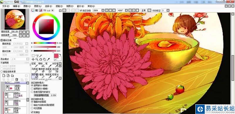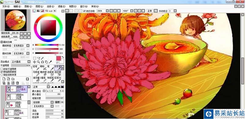 sai中想要給一幅圖畫上色,因為圖畫中有花朵,一層一層的花瓣上色挺麻煩的,該怎么上油彩畫顏色呢?下面我們就來看看詳細(xì)的教程。