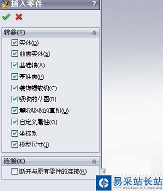 3、在彈出的左側插入零件關鍵因素欄內選擇需要的打勾,然后確認即可完成鏡像零件制作