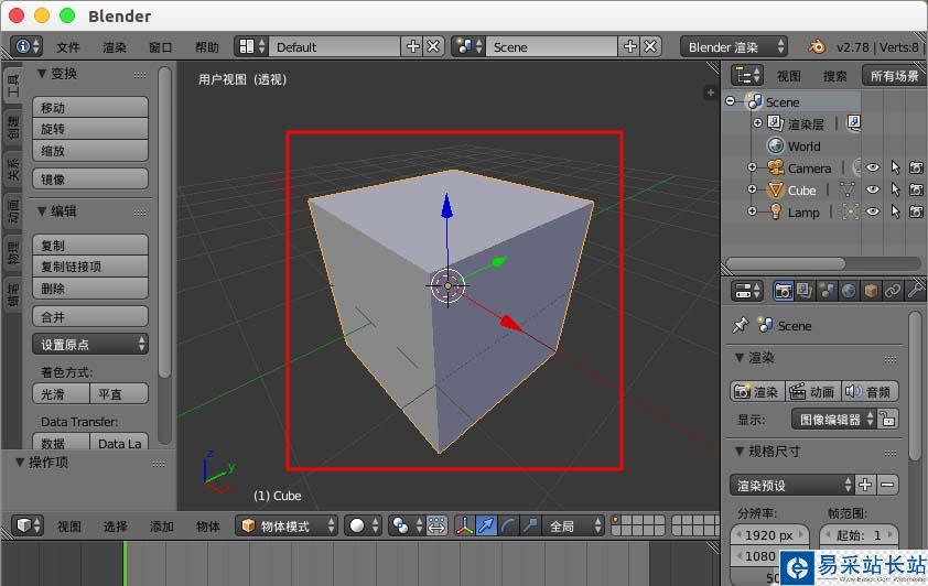 1、打開(kāi)blender窗口創(chuàng)建一個(gè)立方體。