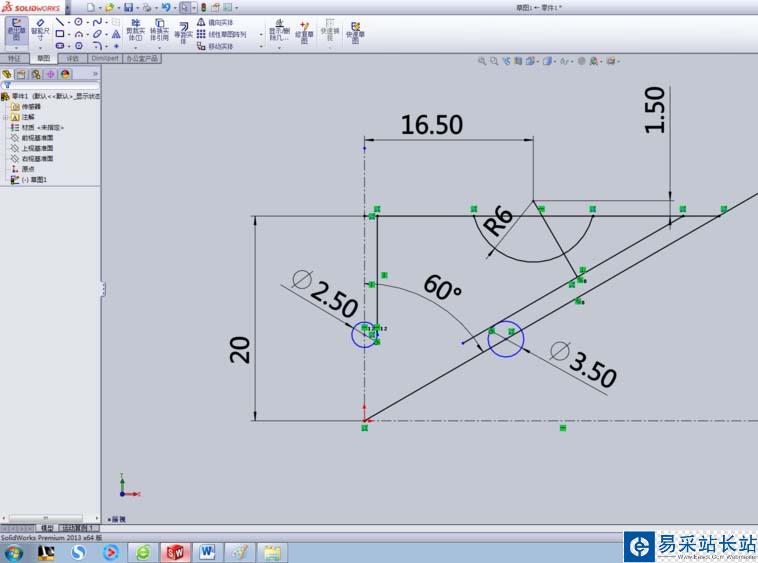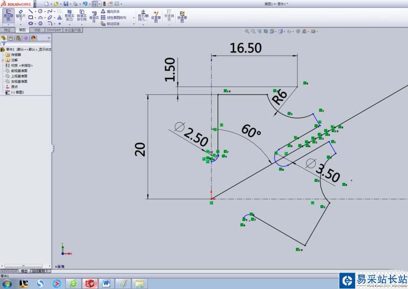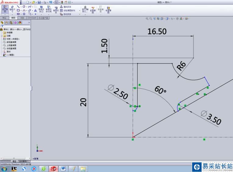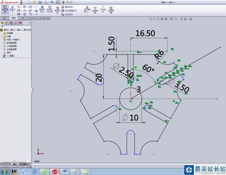 1、新建草圖,運用中心線和直線命令繪制如下草圖。