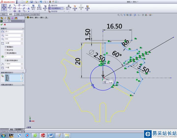 5、選擇圓周命令按鈕,出現圓周陣列對話框,按下圖設置選項,完成陣列。