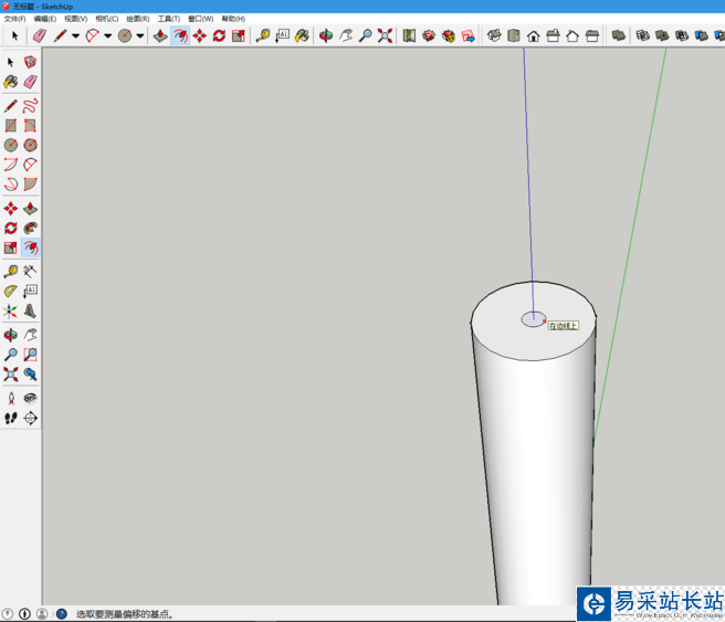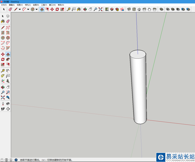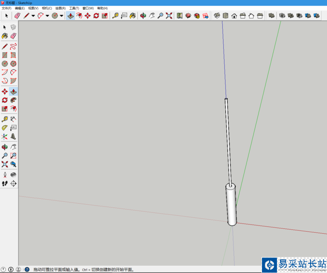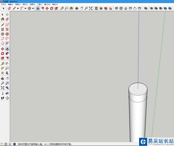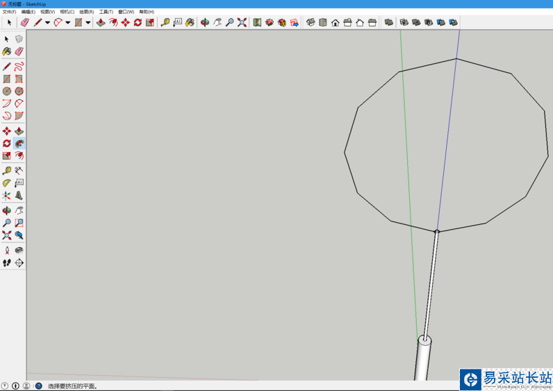 4、接下來使用推拉工具推拉出一小段圓柱體,在羽毛球桿的圓柱狀頂面推拉,按一下Ctrl鍵。