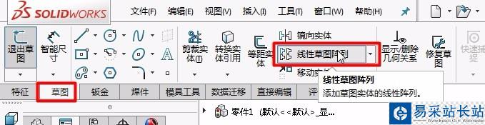 2、選擇【草圖】工具欄中的【線性草圖陣列】工具