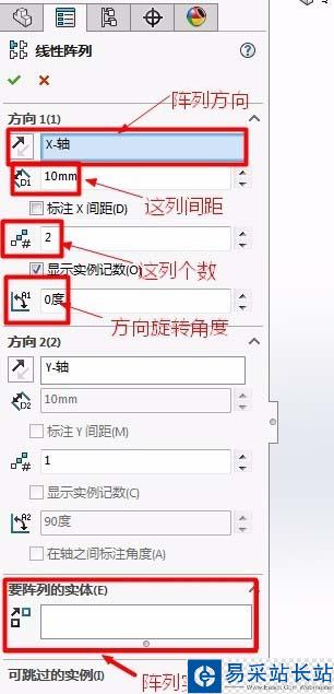 線性陣列和線性草圖陣列的區(qū)別在于,線性陣列是在實體上進行陣列,而線性草圖陣列是在草圖上進行陣列。