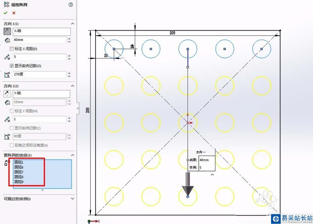 6、在【要陣列的實體】中將所有要陣列的圖形選中即可。