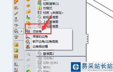 2、在鈑金工具條中找到這個圖標 邊角命令,如果沒有鈑金工具條,可右鍵單擊軟件空白處調出鈑金工具條