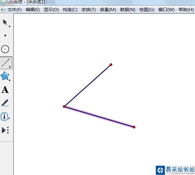 1、打開幾何畫板,單擊側邊欄“線段直尺工具”,如圖所示。
