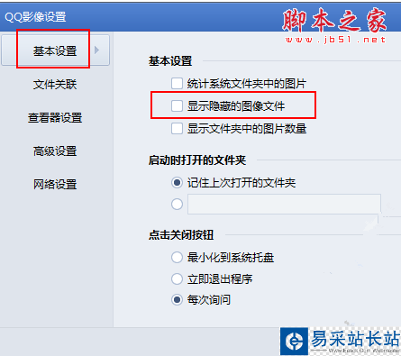 2、接著在“設置”界面的左側打開“基本設置”,在這里找到“顯示隱藏的圖像文件”,如下圖所示: