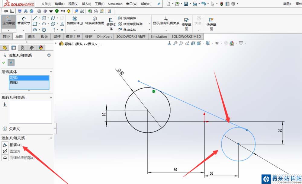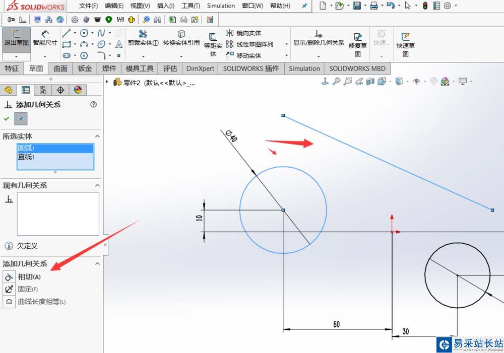 SolidWorks兩個圓的想要畫公切線,該怎么畫呢?下面我們就來看看詳細的教程。