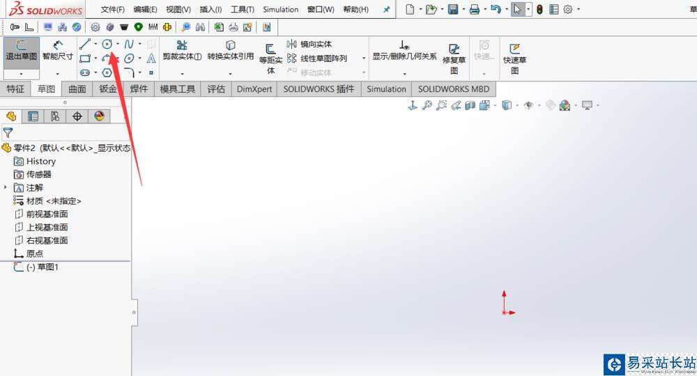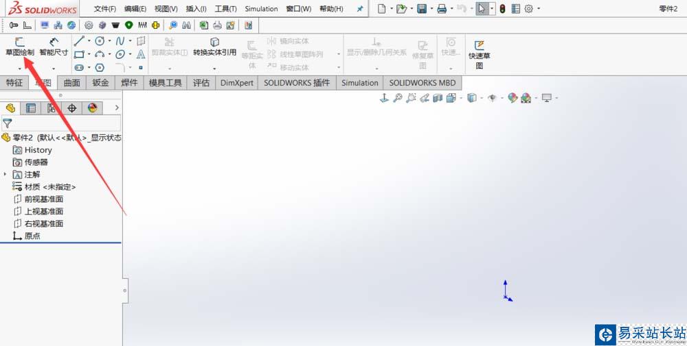 1、打開軟件,選擇新建零件圖,之后新建一個草圖。