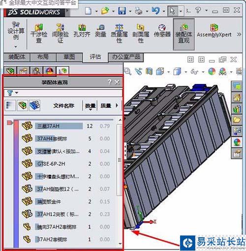 4、裝配體直觀打開后,所有零件都統計了,
