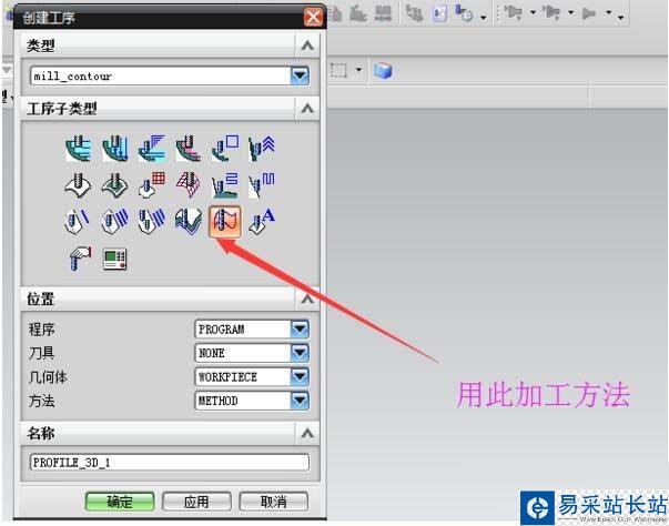 1、進入UG 3D加工模塊,采用3D外形線加工功能。如下圖所示。