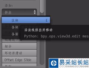2、點(diǎn)擊左邊面板的添加,擠出->區(qū)塊,快捷鍵:E