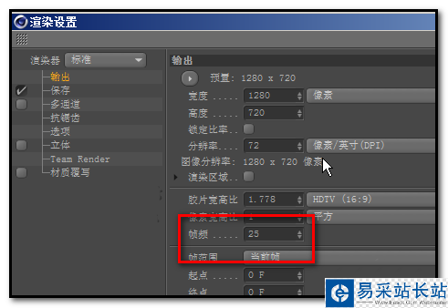 2、然后,在幀率這里設置25,接著,再打開渲染設置操作面板,再設置幀頻為25