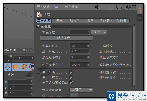 1、新建球體;再設置幀率;點擊:編輯-工程設置,在右下側彈出屬性面板