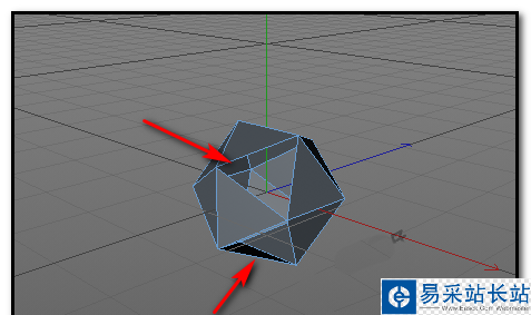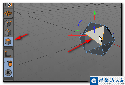3、鼠標點擊面圖標,鼠標再點物體的要刪除的一個面,再按下鍵盤的DELETE鍵,刪除此面。
