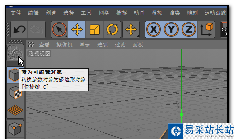 2、然后,按下C鍵,或是點下左側的工具欄上端的轉為編輯對象的圖標;把物體轉為可編輯。
