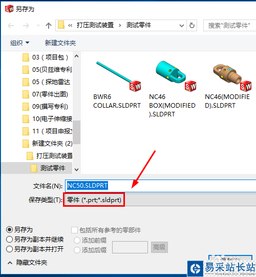 4、彈出保存零件類型,選擇stp格式,有兩種版本,根據自己需要選擇,如圖所示