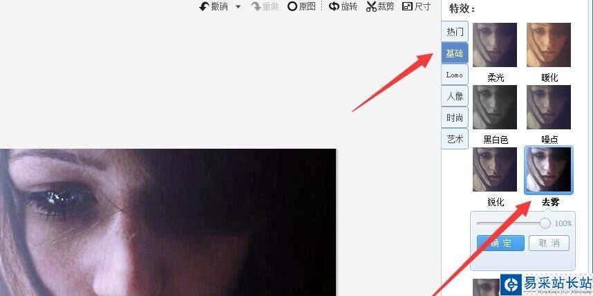 2、在基礎的菜單下面,點擊去霧 選項,這時可以提高圖片的清晰度和對比度。