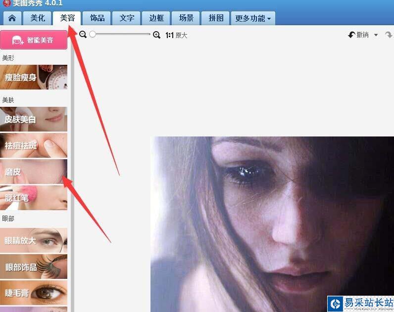 3、接下來,選擇美容菜單下面的磨皮功能。