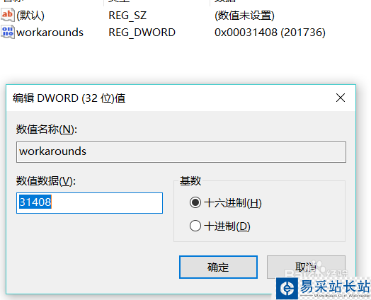 5、在剛新建的“項”中,再新建一個“DWORD(32位)值”,命名“Workarounds”。