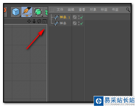 2、現(xiàn)在,需要把樣條復(fù)制一個,并旋轉(zhuǎn)到下方。在界面右上方,點(diǎn)下”樣條“字樣,然后,按下CTRL+C復(fù)制,再CTRL+V,粘貼,