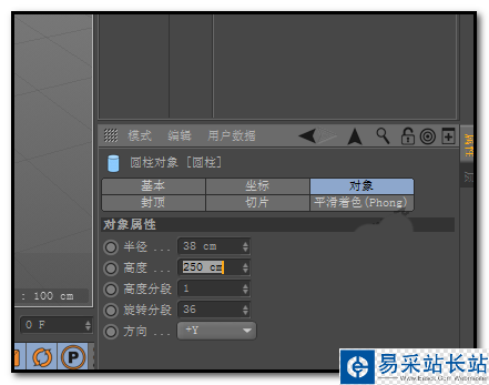 2、接下來(lái),再添加基礎(chǔ)物體,球體;然后,又添加:圓柱;選中圓柱;把圓柱半徑參數(shù)調(diào)小些,比如,38CM;把高度參數(shù)調(diào)大些,比如,250CM;