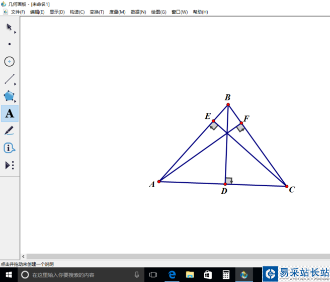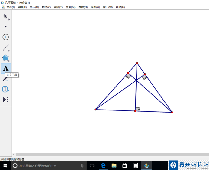 7、點文字工具。之后點三角形的三個頂點、垂點,會有字母出現(xiàn)。