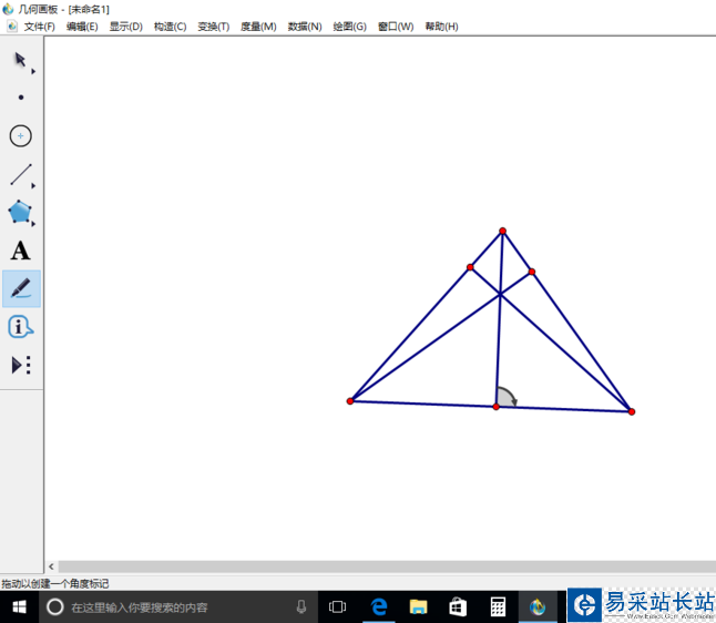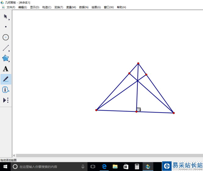 3、為了美觀,可以進(jìn)行以下操作:點擊點工具,畫出三個垂點。