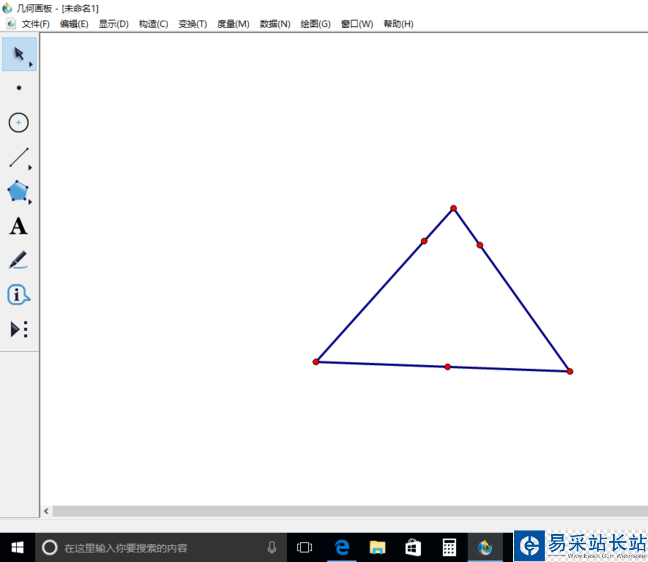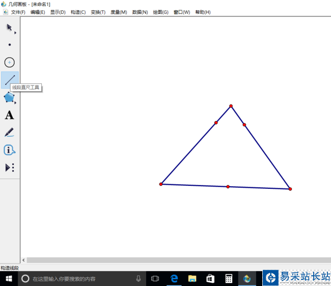1、打開幾何畫板,用線段直尺工具,先繪制出一個三角形。